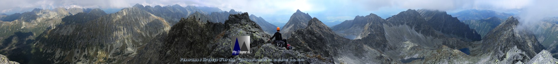 Poniżej opisane ujęcia z różnych kierunków. Po kliknięciu w pierwszy rysunek graniówki Tatr, pokaże się szczegółowy schemat wszystkich grani, wierzchołków i przełęczy, a także większości nazwanych miejsc i żlebów. Drugi rysunek ukazuje schemat miejsc, z których wykonywano opisane panoramy. Niżej miniaturki ujęć. Wszystkie miniarurki mają swe odnośniki do panoram większych rozmiarów.